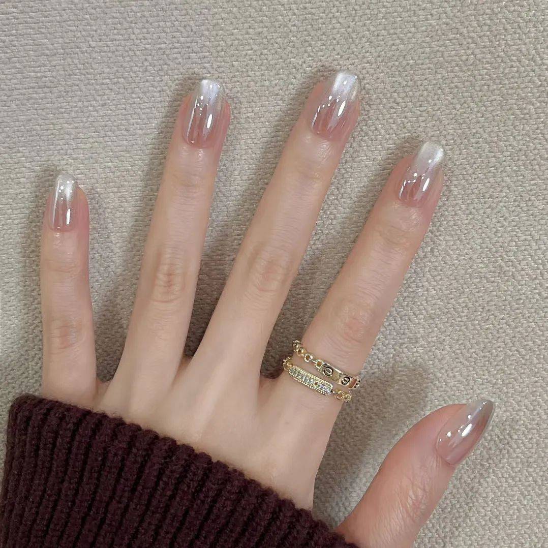 当猫眼与魔镜粉相遇,那效果简直惊艳到让人尖叫。比如,以淡蓝色的猫眼胶为底色,吸好光带后,在指甲的前端轻轻涂抹上银色的魔镜粉。蓝色的猫眼光带如同静谧的海洋,而银色的魔镜粉恰似海面上闪烁的粼粼波光,两者相互映衬,营造出一种梦幻而又迷人的氛围。又或者,用裸色的猫眼胶打底,做出渐变的效果,然后在指甲的后半部分覆盖上金色的魔镜粉。裸色的温柔与金色的奢华完美融合,渐变的猫眼效果增加了层次感,让整个美甲显得优雅又大气,无论是日常通勤还是参加重要场合,都能轻松 hold 住全场。