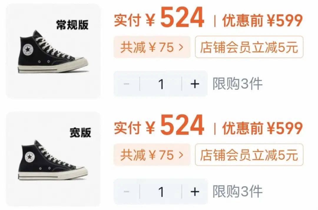 以挤脚闻名的匡威,最近悄然改变了产品策略。品牌宣布推出全新 CHUCK 70 宽版鞋型,据官方信息显示,这款新鞋型在整体维度上增加约 15mm,鞋底宽度拓宽 7mm,从鞋头到鞋身都进行了针对性调整。目前经典黑白配色的高低帮款式均同步提供常规版与宽版选择,在匡威小程序及主流电商平台旗舰店同步发售,且两种鞋型保持同等定价。