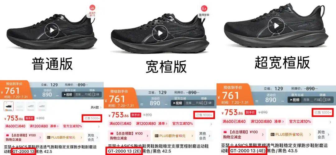 这一举措并非孤例,而是整个制鞋行业正在发生的悄然变革。运动品牌领域早已布局宽版市场:HOKA ONE ONE 的 “Clifton 10” 跑鞋为男女款均配备标准版与宽版选项;布鲁克斯更细分出加宽与超加宽两个进阶版本;亚瑟士的 “GT-2000 13” 男鞋则提供三级宽度选择,宽楦版(2E)前掌足围增加 3%,宽度拓宽 1-3mm,超宽楦版(4E)则提升至 6% 的足围增幅与 3-5mm 的宽度扩展,三个版本同价销售的情况下,宽版鞋累计销量已突破 1000+。