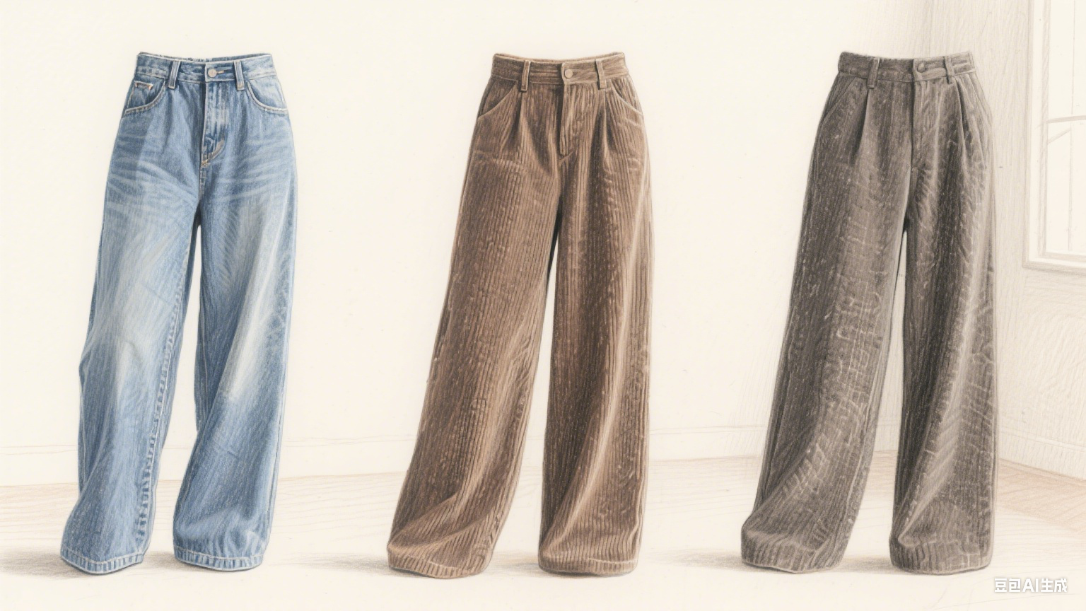 在材质的选择上,秋季的宽腿裤可谓多种多样。棉质宽腿裤,柔软亲肤,透气性极佳,给人一种温暖而舒适的感觉;牛仔宽腿裤,则凭借其硬朗的质感和复古的风格,成为了时尚潮流的象征,彰显出穿着者的个性与态度;而灯芯绒材质的宽腿裤,以其独特的纹理和细腻的触感,为秋日穿搭增添了一份别样的温暖与质感,让人仿佛置身于充满诗意的秋日画卷之中。